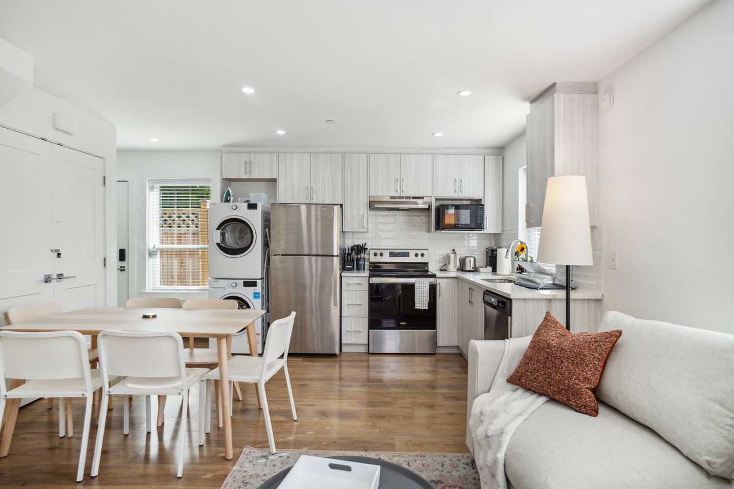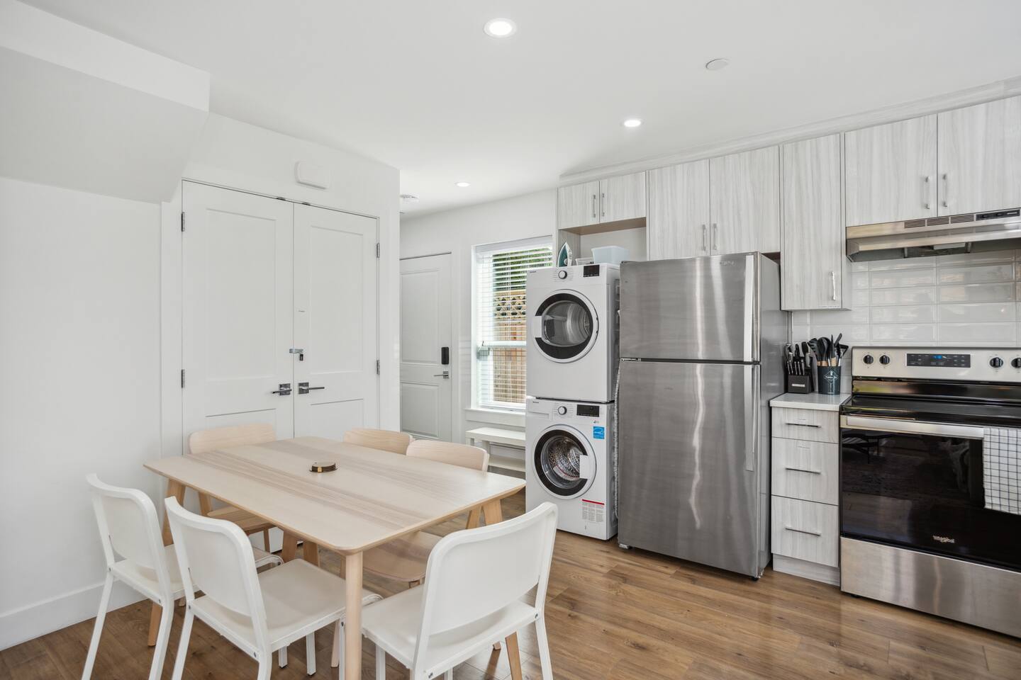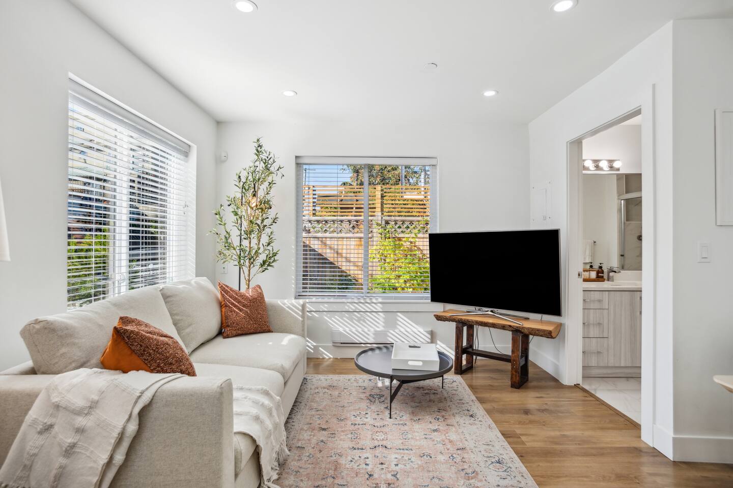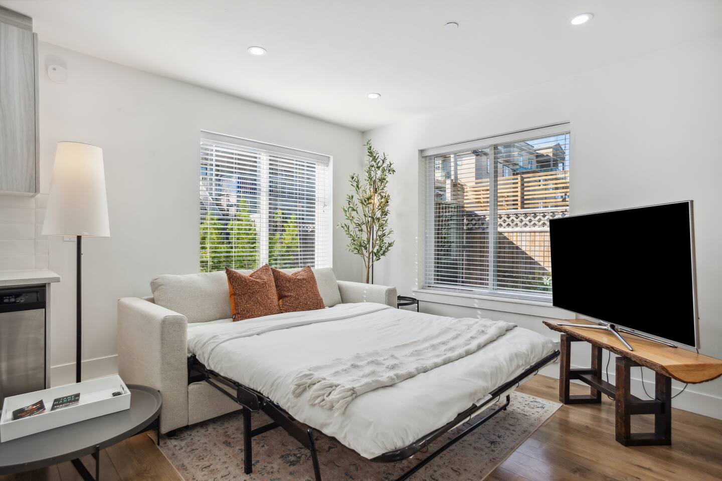 This charming two-level home is designed with comfort in mind, offering plenty of space for relaxation after a day of sightseeing. Bedroom Located upstairs for added privacy 2 comfortable queen beds with fresh linens and extra pillows Living Room Queen-size sofa bed for additional guests Smart TV compatible with your favorite streaming services Dedicated workspace for remote work or study Kitchen Fully equipped with modern appliances including a Nespresso espresso machine Stocked with cooking basics, dishes, silverware, and wine glasses Bathroom Full bathroom with shower, stocked with shampoo, conditioner, and body wash Fresh towels and a hair dryer provided Climate & Comfort Heating for cooler months Portable air conditioning unit available for summer comfort Laundry Washer and dryer available for guest use Location Highlights Walking distance to Queen Elizabeth Park and nearby green spaces Easy access to public transit for exploring Vancouver Close to shops, restaurants, and cafes